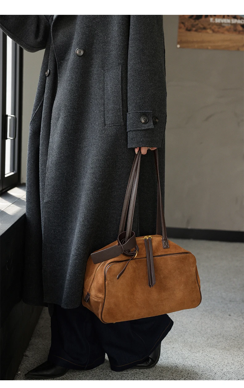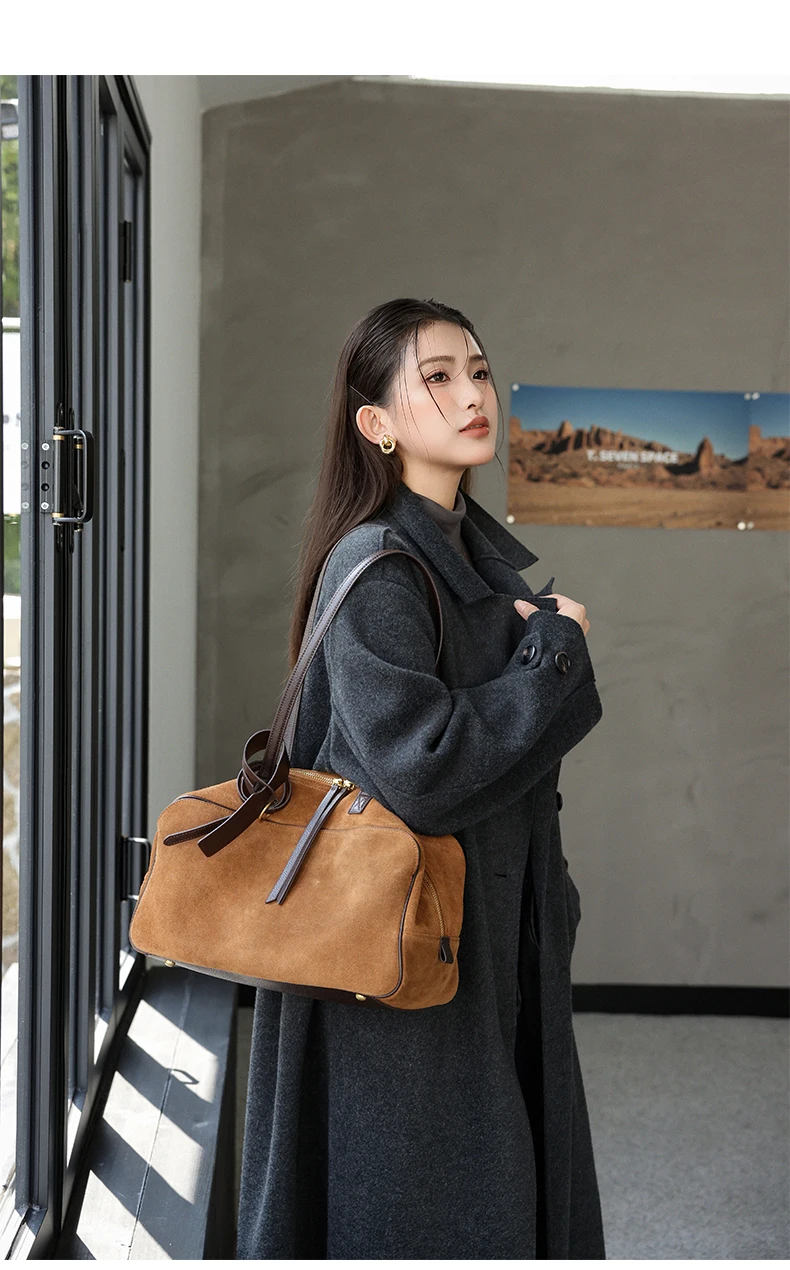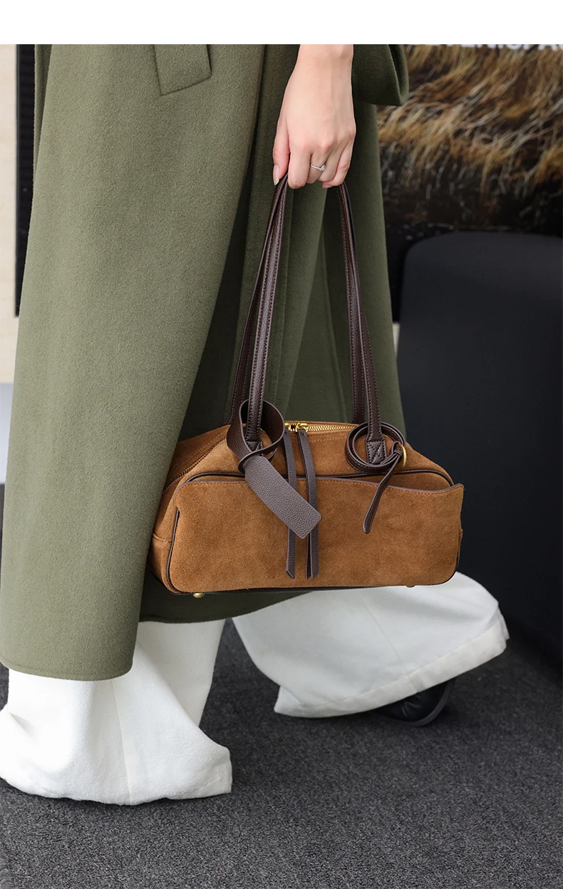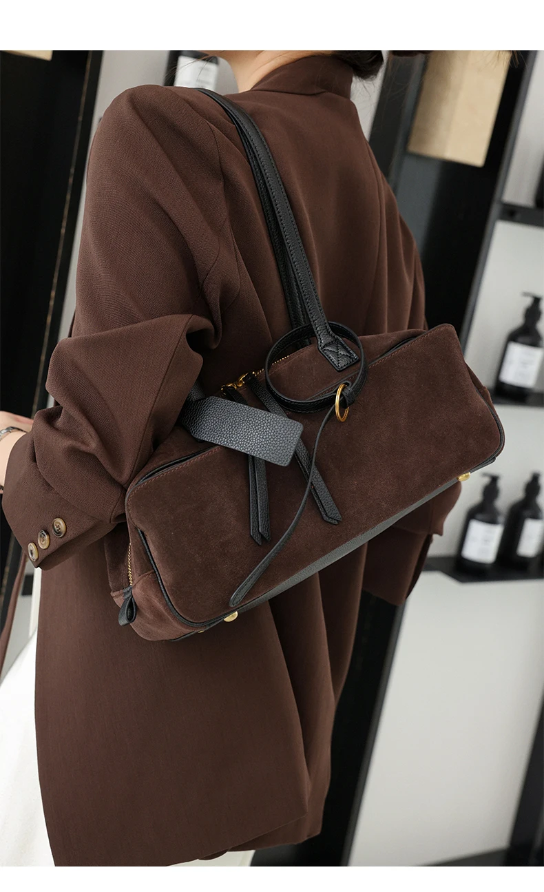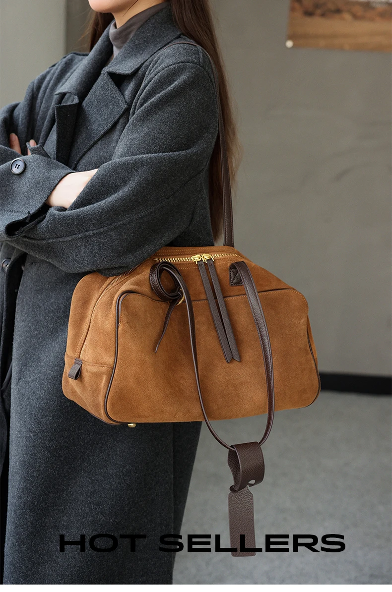 Women's Suede Leather Tote | Designer Cowhide Handbag Fall Winter