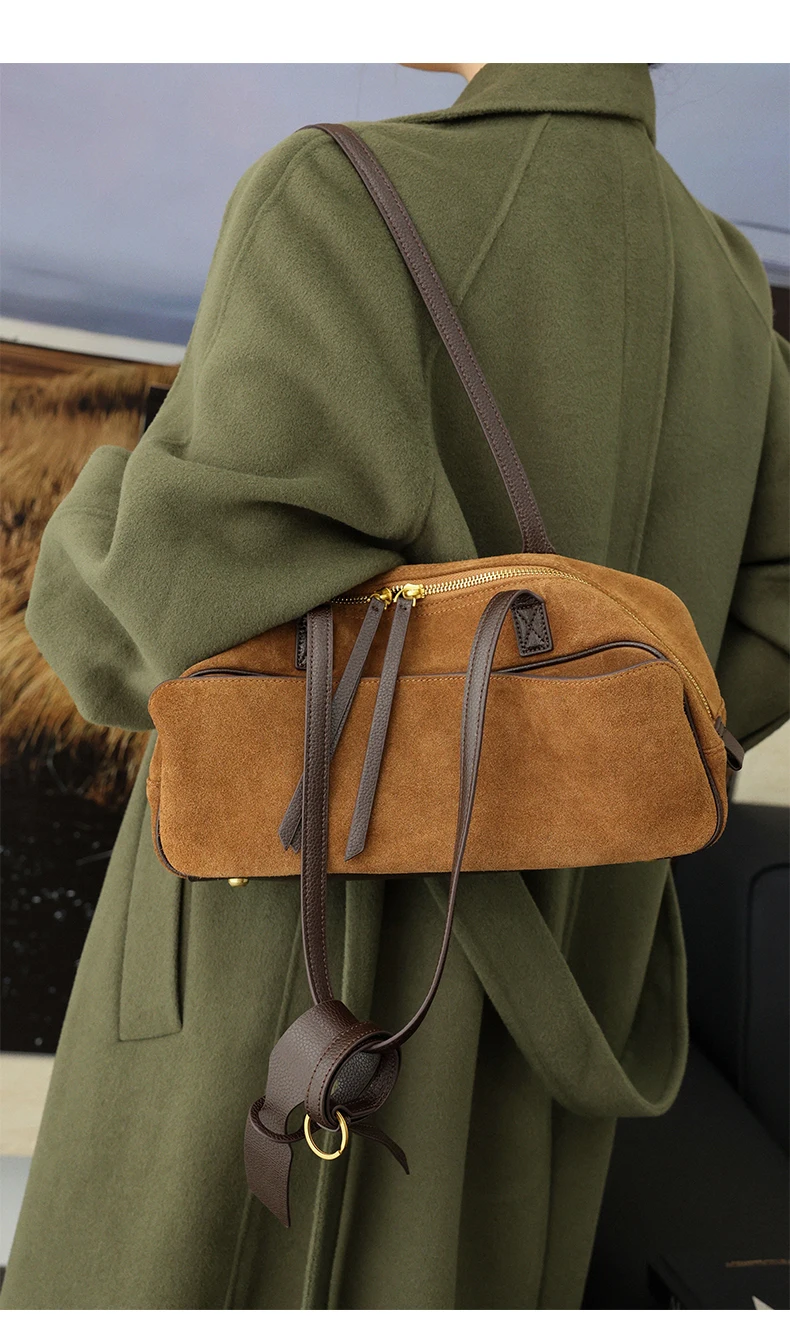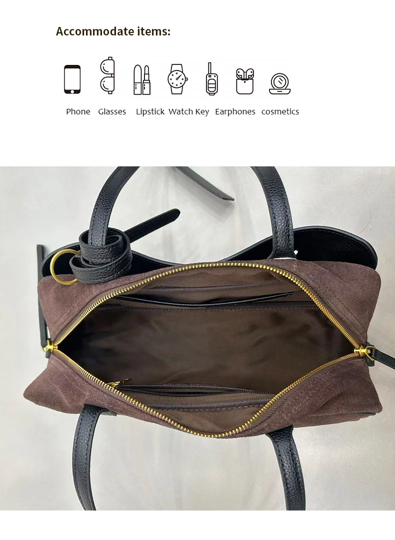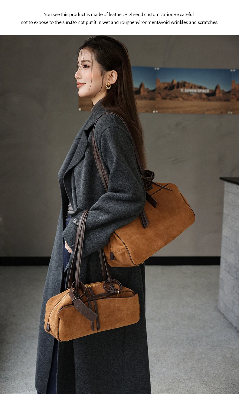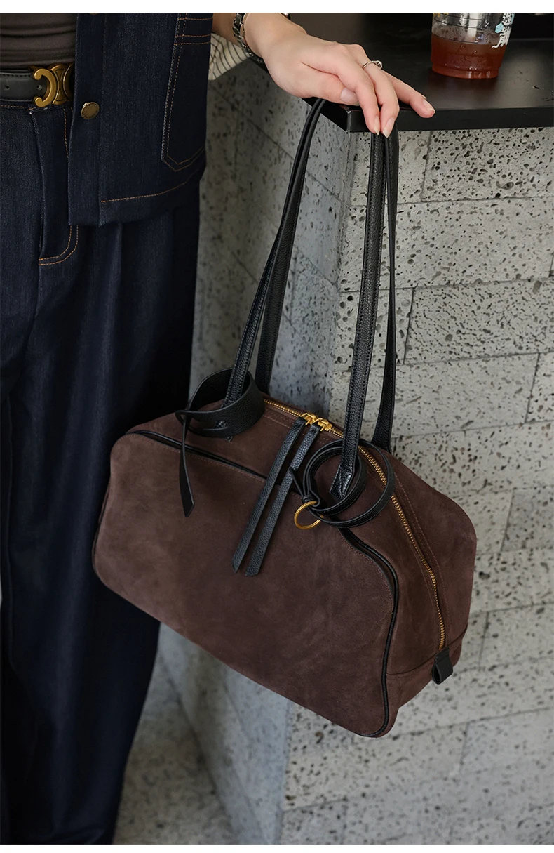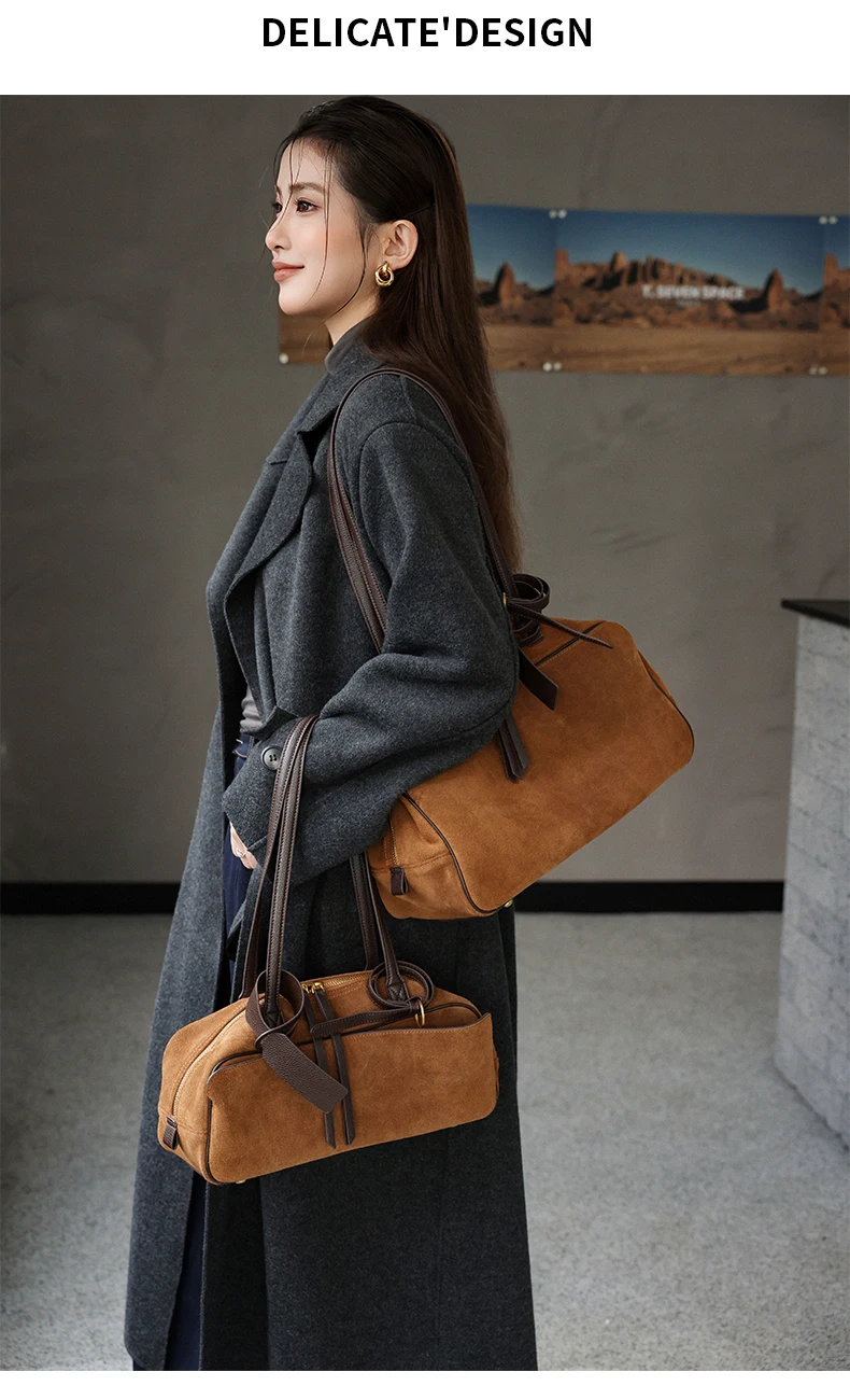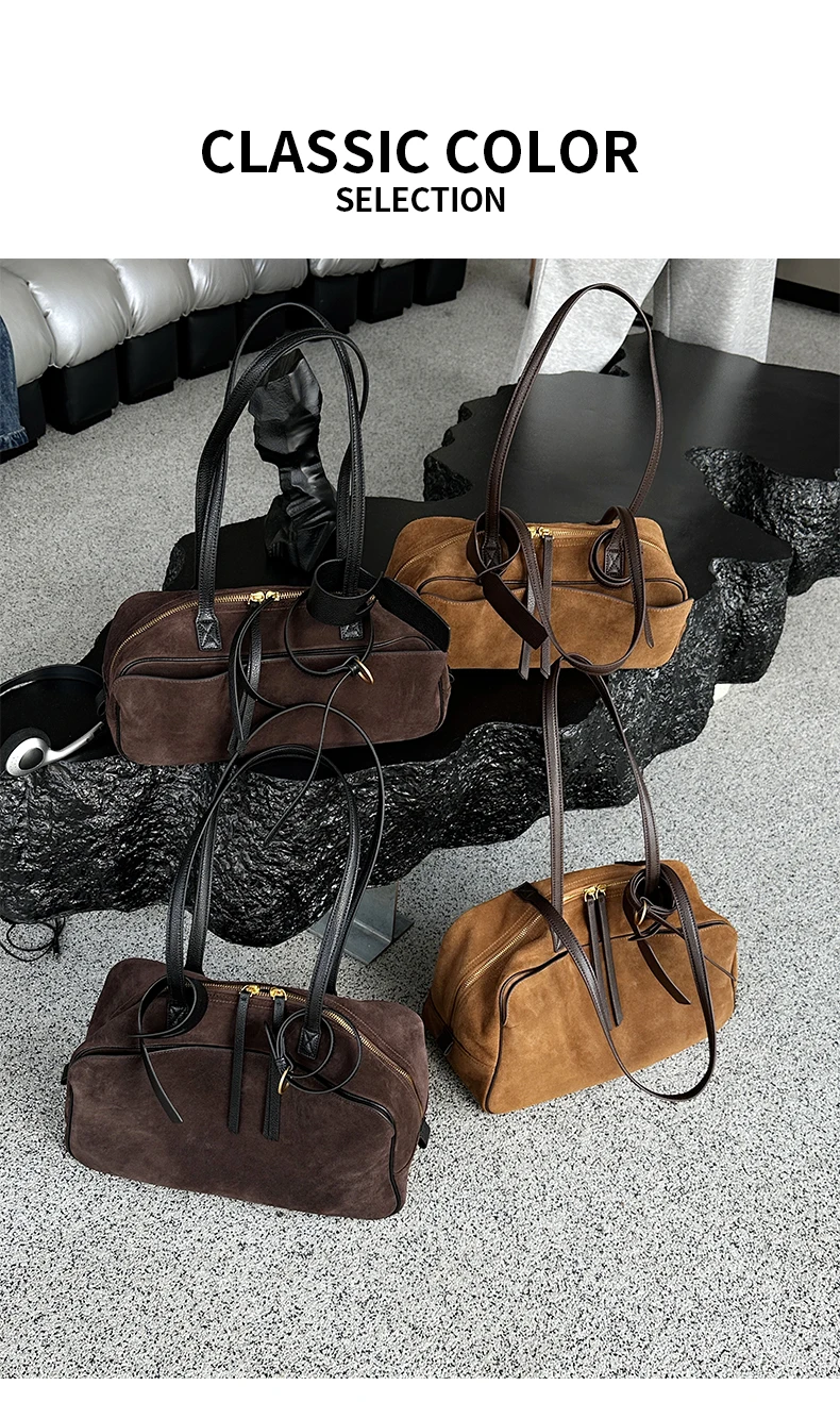 Women's Suede Leather Tote | Designer Cowhide Handbag Fall Winter