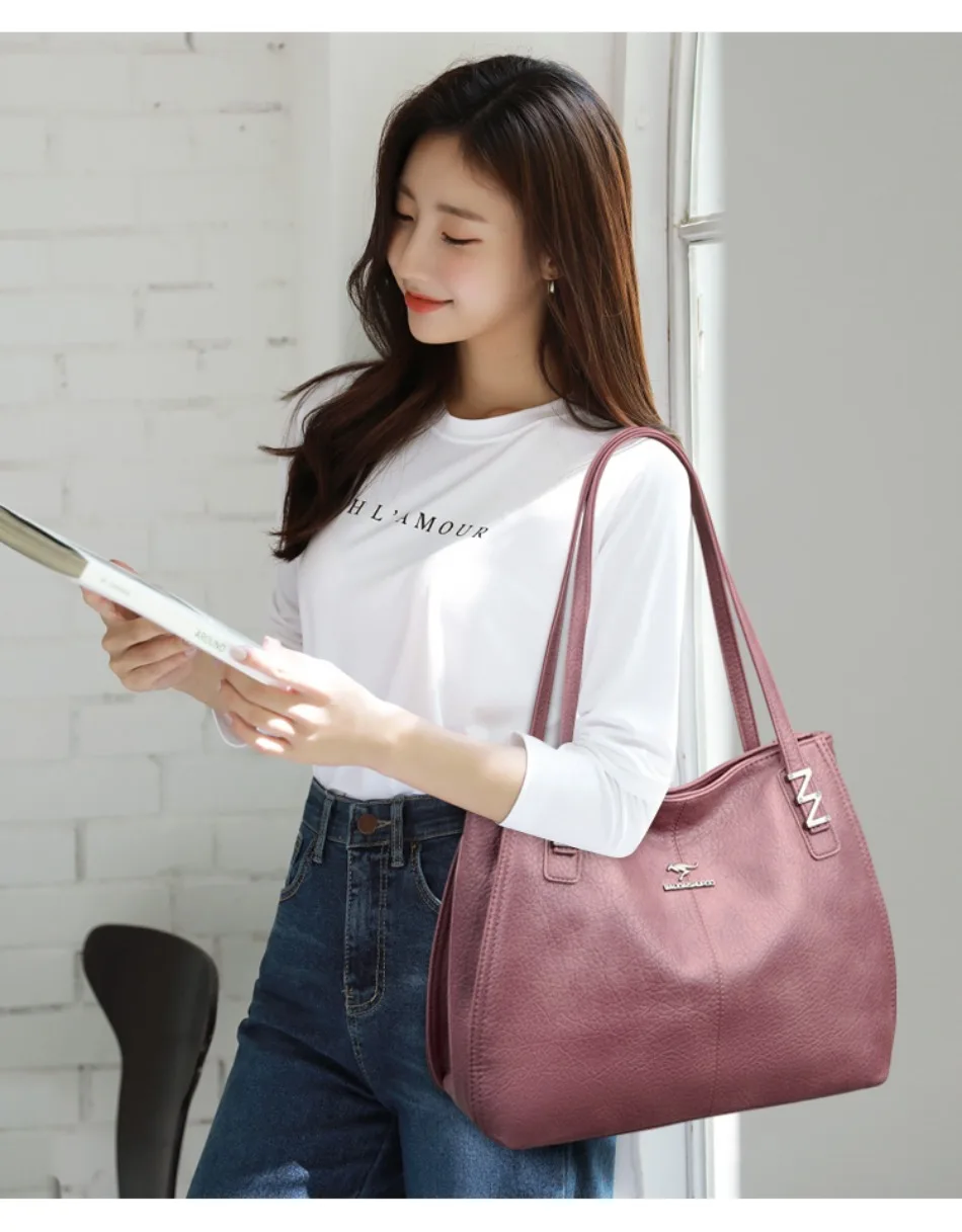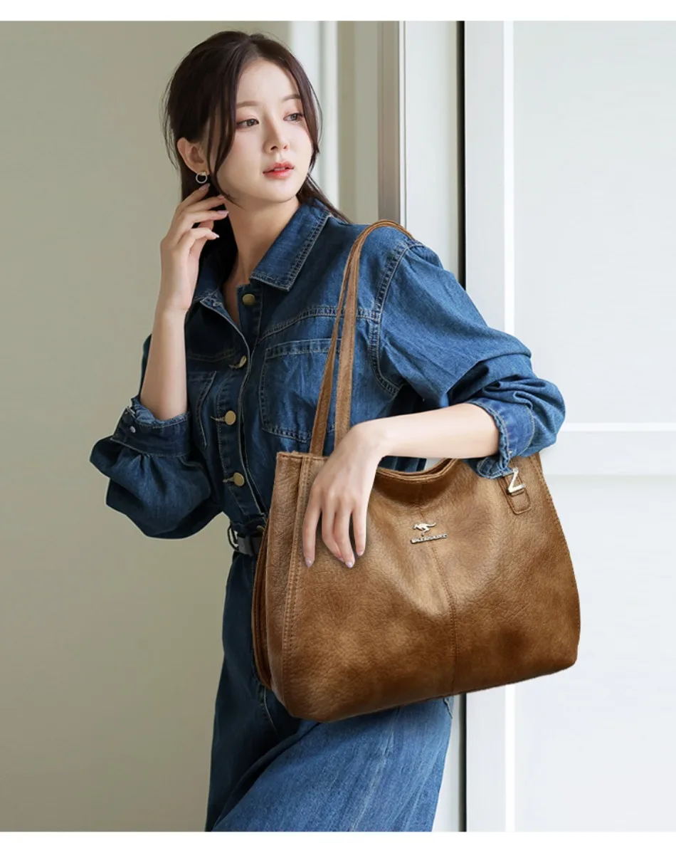Top Quality Handbags for Women Luxury Designer Soft Pu Leather Tote Bag Ladies Daily Commuting Work Sac Casual Female Hand Bags